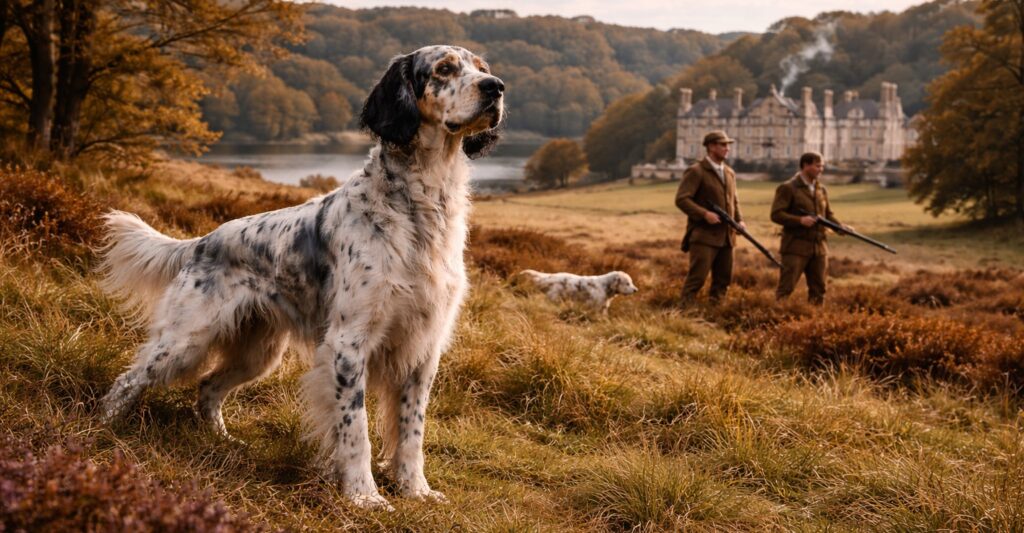 Refined in Britain during the 19th century, the English Setter became a distinguished gun dog valued for its elegance, endurance, and remarkable bird-finding ability.